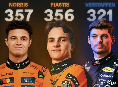 墨西哥大奖赛过后,诺里斯积357分,皮亚斯特里积356分,维斯塔潘积321分。诺里斯反超队友皮亚斯特里1分,成功升至车手积分榜榜首,维斯塔潘落后诺里斯36分,落后皮亚斯特里35分,在还剩4站比赛的情况下,谁将夺得车手年度冠军依然有悬念。