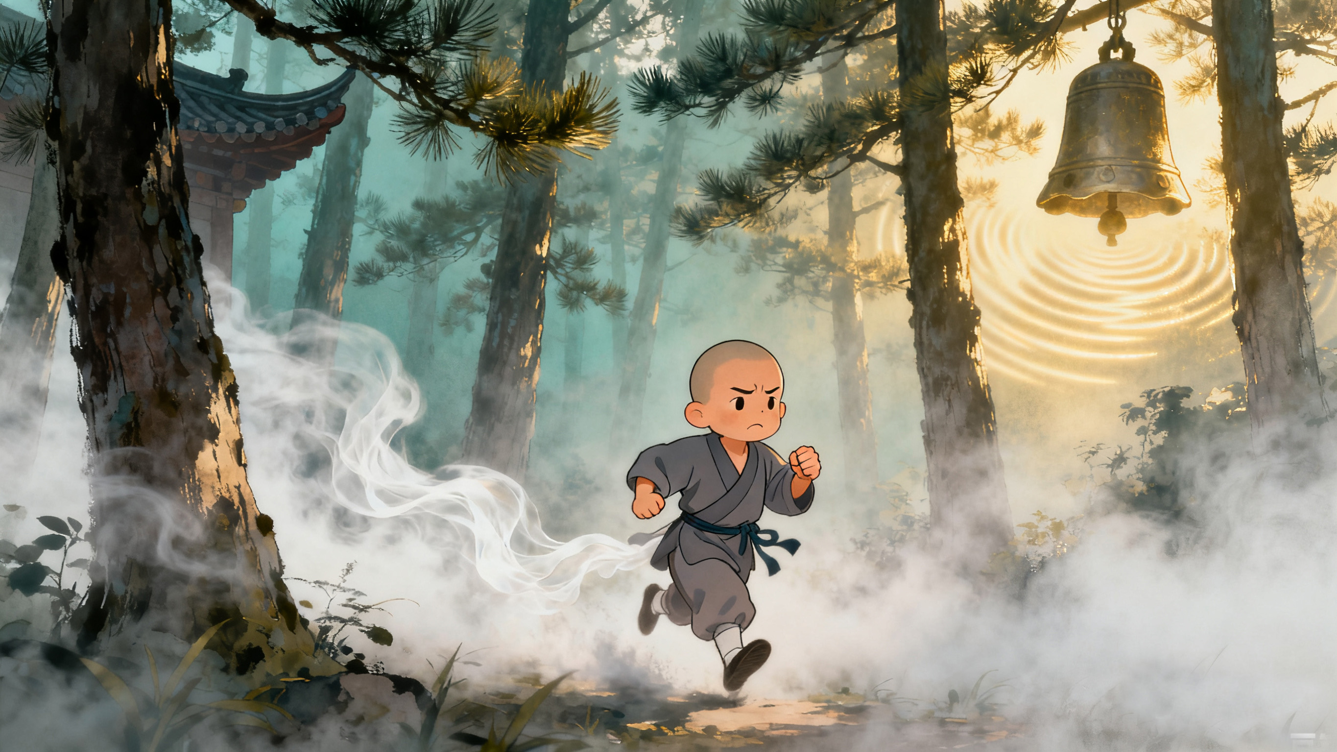 山寺第一声晨钟荡开时,松间的雾还泊在枝头,薄如未醒的禅意。一个小沙弥一路小跑,来到一老僧跟前,两只拳头攥得发白,像是要把整个清晨的委屈都捏碎。