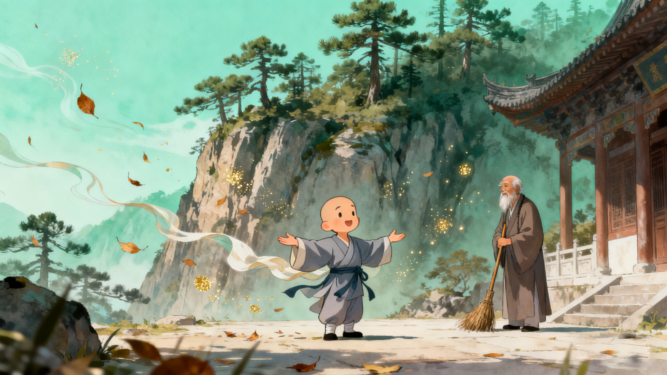 老僧正执帚扫阶,落叶在他扫帚下沙沙作响。听见喘息声,他头也未抬,只温声道:“是山风动,还是你的心在动?”