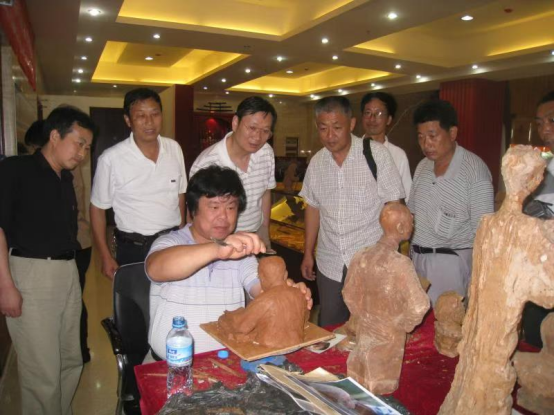 在中原科技学院,刘永占的实践更侧重于非遗传承的普及与技艺启蒙。除了捐赠《卖糖葫芦》泥塑作品,他还受邀参与学校“中原非遗传承与推广应用研究”活动,现场开设技艺体验区,手把手教学生捏制简单的泥塑造型。面对毫无美术基础的学生,他耐心拆解步骤,从揉泥的力度、捏形的手法到细节的勾勒,一步步示范讲解,鼓励学生大胆尝试、融入个人创意。有学生用泥土捏出校园标志性建筑,有学生创作卡通形象,刘永占都给予充分肯定:“泥塑没有标准答案,只要有自己的想法、肯动手,就是好作品。”这种鼓励式的互动方式,极大激发了学生的创作热情,不少学生在体验后表示 “原来泥塑这么有趣,以后想多了解相关知识”。同时,他还与学校教育学院的老师深入交流非遗融入手工制作专业课程的思路,结合学生特点提出 “从简单造型入手,逐步渗透文化内涵” 的教学建议,为后续课程开发提供了重要参考。