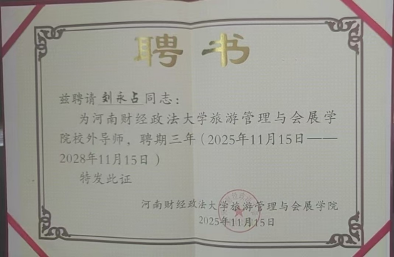 在非遗传承面临 “年轻人不愿学、后继乏人” 的困境时,刘永占始终在探索传承的新路径。而高校的橄榄枝,为他的传承事业打开了全新的天地。2025 年 11 月 15 日,河南财经政法大学旅游管理与会展学院正式聘请刘永占为校外导师,聘期三年;一个月后,中原科技学院再发聘书,邀请他担任客座教授,两份聘约的背后,是高校对非遗传承育人价值的深刻认同,也是对他数十年深耕泥塑技艺、深耕非遗传承的高度肯定。