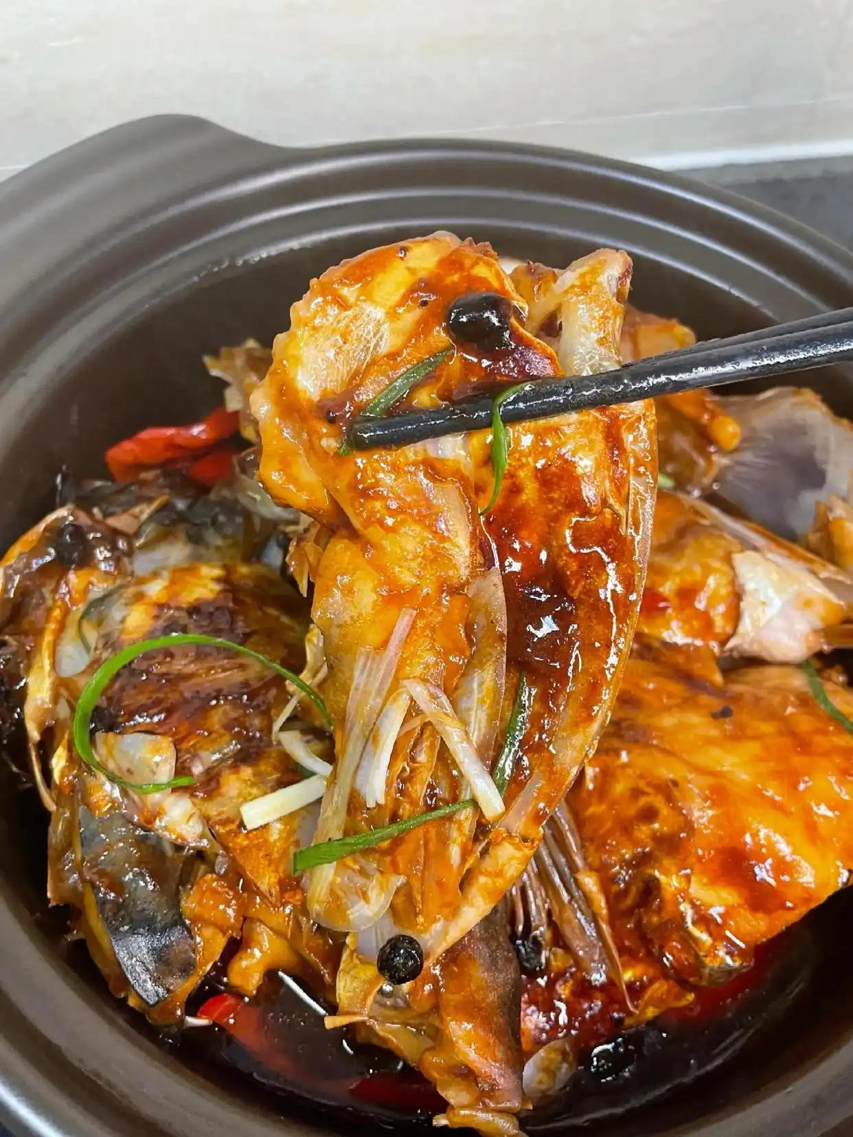5. 最后增香与出锅:开盖放入青红椒片,继续焖2分钟。出锅前撒上香菜段,一锅热气腾腾、香气四溢的砂锅鱼头煲就完成了。