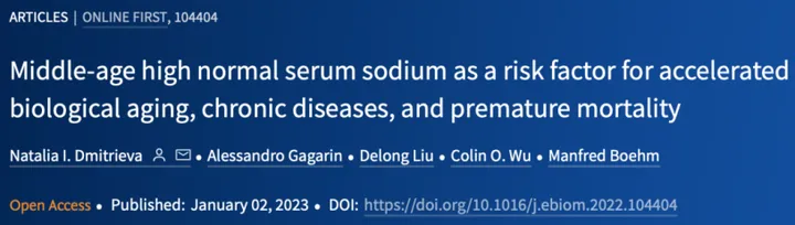 与充足饮水相比,血清钠>142毫摩尔/升的参与者,生物年龄比实际年龄增大的几率增加10~15%;当血清钠>144毫摩尔/升时,生物年龄比实际年龄增大的几率则会增加50%!