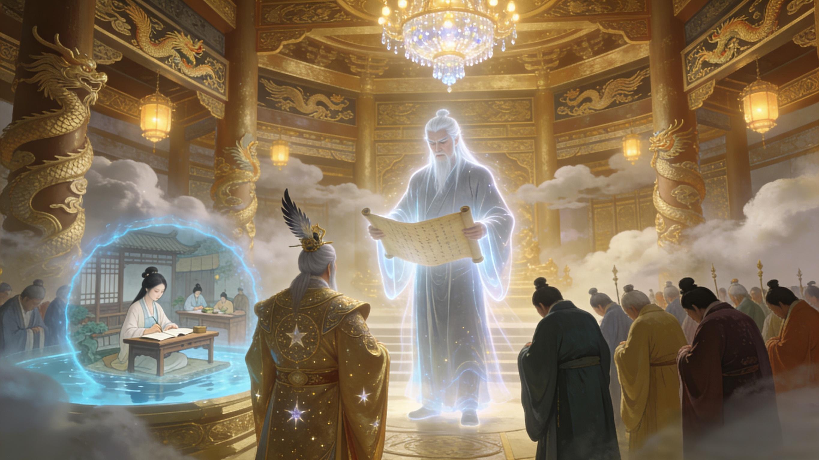 凌霄殿里一片寂静,金色的霞光笼罩着整个殿宇,仿佛预示着一个新的时代即将到来。