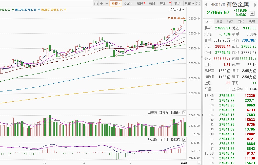 资金流向方面,近期有色金属板块备受青睐。2025年12月以来,该行业获融资净买入达109.7亿元,紫金矿业、赣锋锂业等龙头股融资净买入金额均超过5亿元。从业绩预告来看,赤峰黄金、紫金矿业、华友钴业、中国铀业等4家公司已公布的2025年业绩预告均显示预增,其中紫金矿业预计归母净利润达510亿元—520亿元,同比增长近六成。