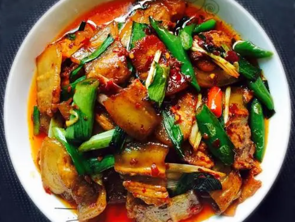 回锅肉是一种古老的食物,是人们用来供奉鬼神和祖先的食物,一道经典菜肴。一个长期生活在外地的四川人,每次返回四川,可以不去品尝任何的美食,但一定要去尝一尝回锅肉。把去皮的猪肉放进锅里,放进开水里,把猪肉放进锅里,烧到刚从里面捞出来,稍微冷却一下,然后把猪肉按照横筋的长度,把猪肉切成长度为6.6厘米,宽度为5厘米,厚度为0.3厘米的薄片。