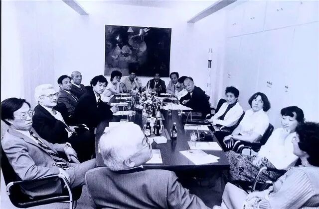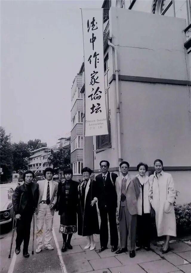 (左起:马德升、金弢、刘索拉、程乃姗、鲁彦周、邓友梅、张洁、王安忆,1988年9月德中作家论坛在汉堡)