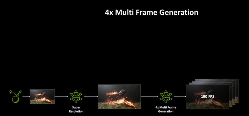 在 GeForce RTX 50系列GPU上,从4倍多帧生成提升至6倍多帧生成,可将采用路径追踪技术的游戏在4K分辨率下的帧率提升高达35%。将这种高效的帧生成模型与 NVIDIA Reflex低延迟技术相结合,意味着DLSS 4.5能以极低的响应延迟影响来生成这些额外的帧。