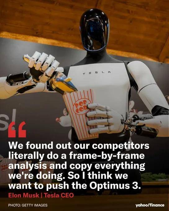 关于新一代 Optimus 的亮相时间,马斯克再次推迟了预期。原本预计在 2026 年第一季度亮相的第三代 Optimus,此次被推至“可能在今年年中”。特斯拉给出的理由颇为直接:竞争对手会对特斯拉发布的内容进行逐帧分析,能抄的都会抄走。