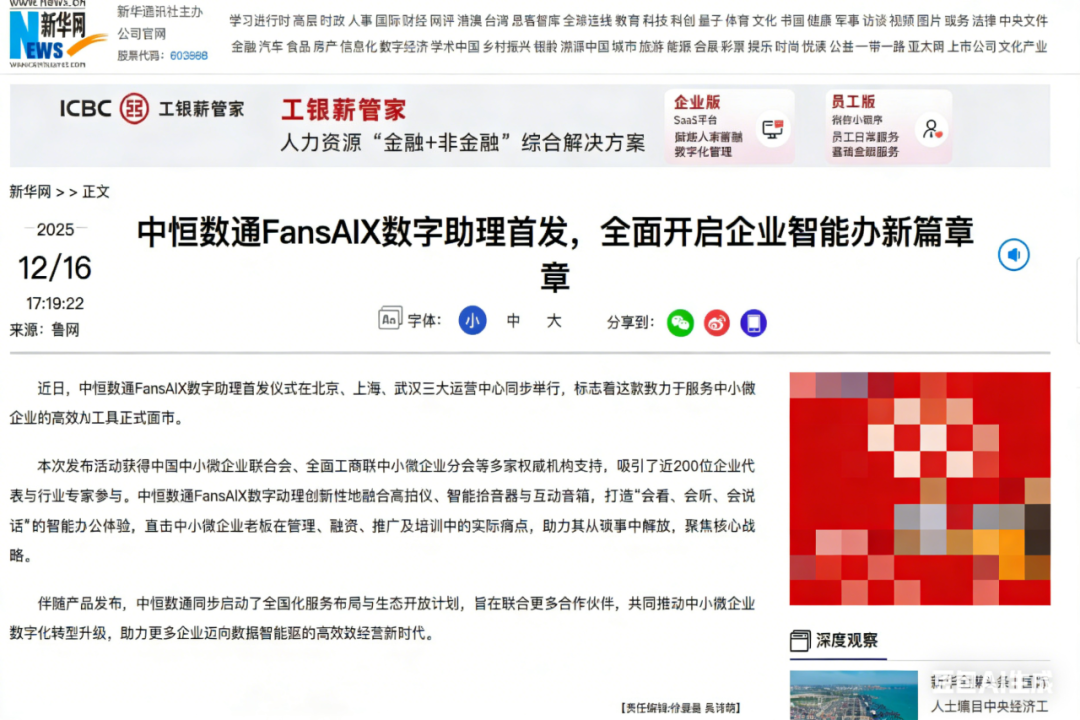 在当下竞争白热化的市场环境中,中小微企业的生存之路布满荆棘。老板们身兼数职,既要扛起战略决策的重担,又要深陷事务性工作的泥潭;想获取高质量信息却苦于渠道有限,想拓展市场、对接融资却面临资源匮乏,想优化管理却受制于人力成本。就在无数中小企业在内卷中艰难求索时,FansAIX 数字助理的横空出世,为行业带来了全新的破局之道,其创新模式与赋能价值更是获得新华网、凤凰网等权威媒体的纷纷转载点评,成为点亮中小微企业信心的 "科技之光"。