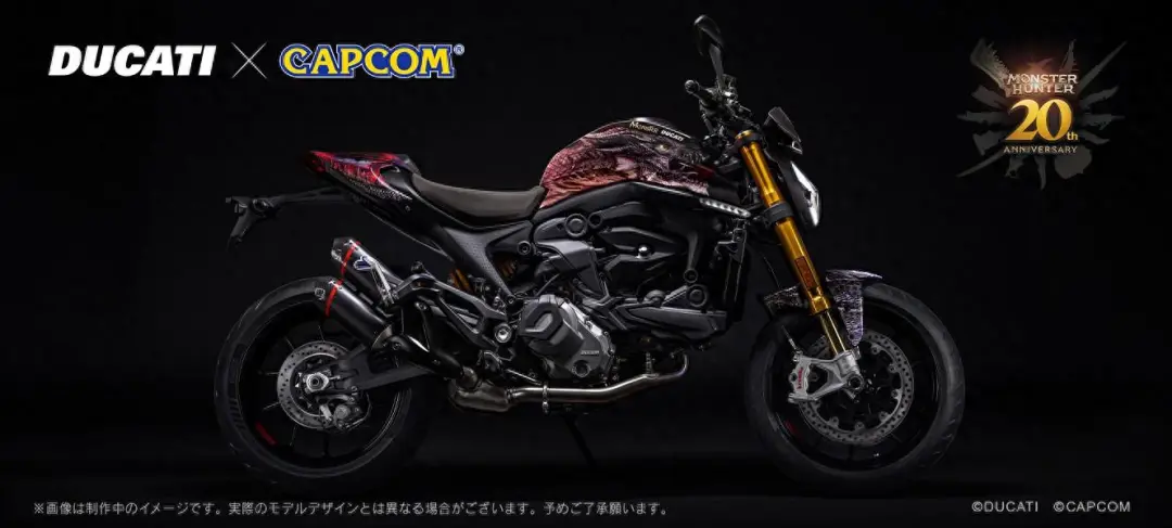 这不是杜卡迪与《怪物猎人》系列的第一次合作。早在2014年,为了纪念《怪物猎人》系列10周年,杜卡迪就曾推出过以“雄火龙”为主题的特别摩托。那次合作的成功,为这次的“黑龙”主题Motor SP奠定了基础。