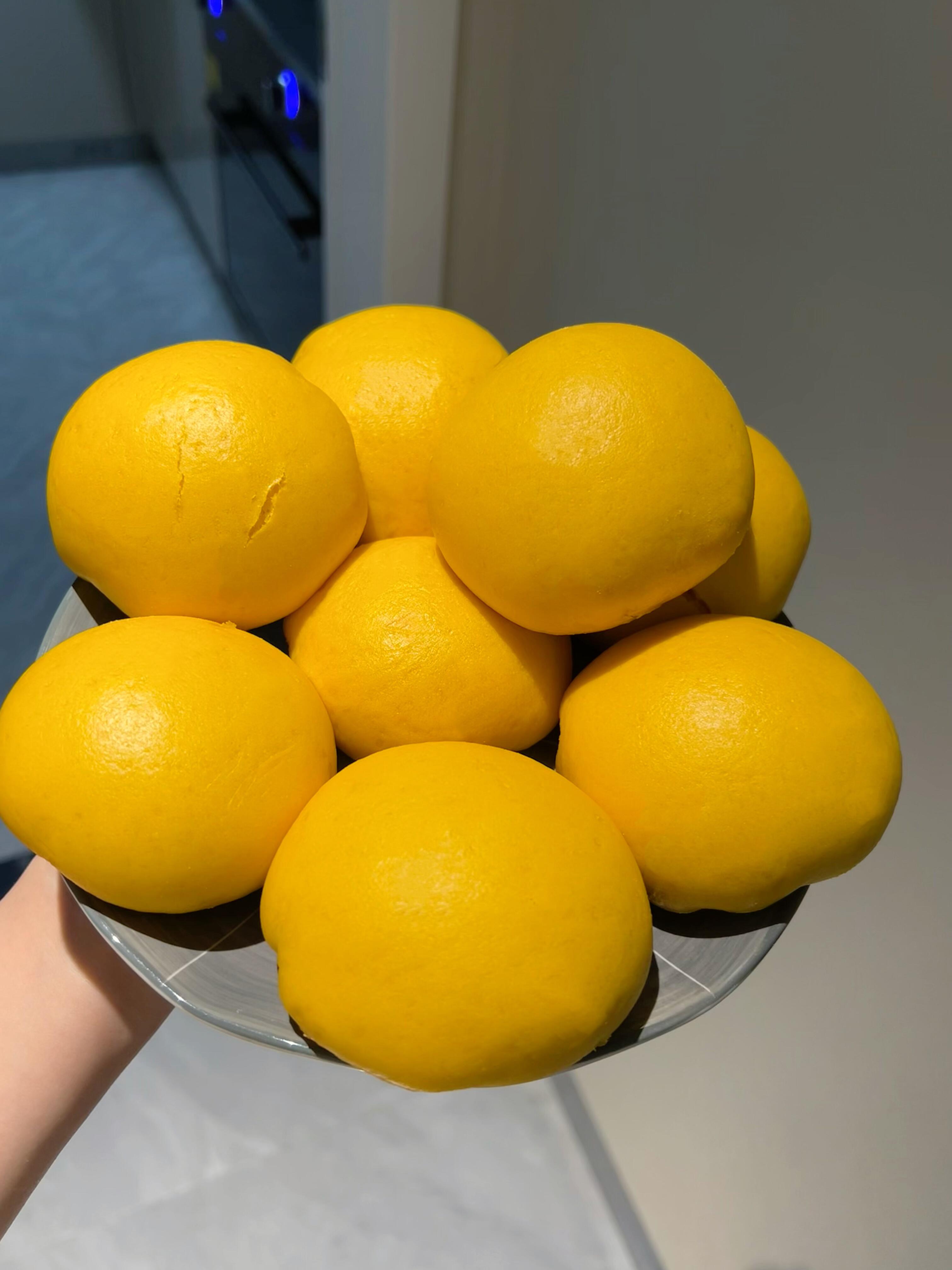 最后,就是蒸馒头啦!蒸锅烧开水,水烧开后放入馒头,大火蒸15分钟,然后关火焖3分钟。这样,一锅香甜软糯、爆浆美味的南瓜流心馒头就做好啦!