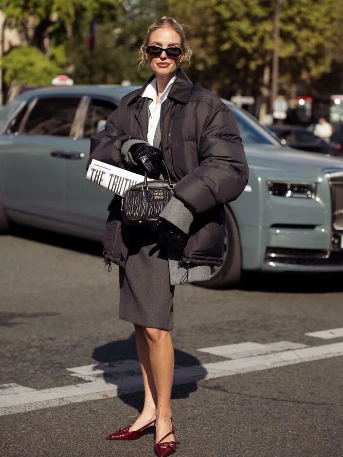 反之,如果羽绒服是修身的,裙子可以选择A字或伞裙,营造优雅复古风。