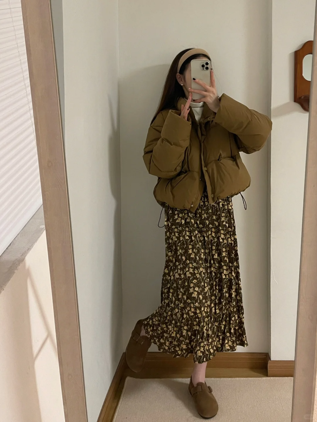 羽绒服+印花半裙