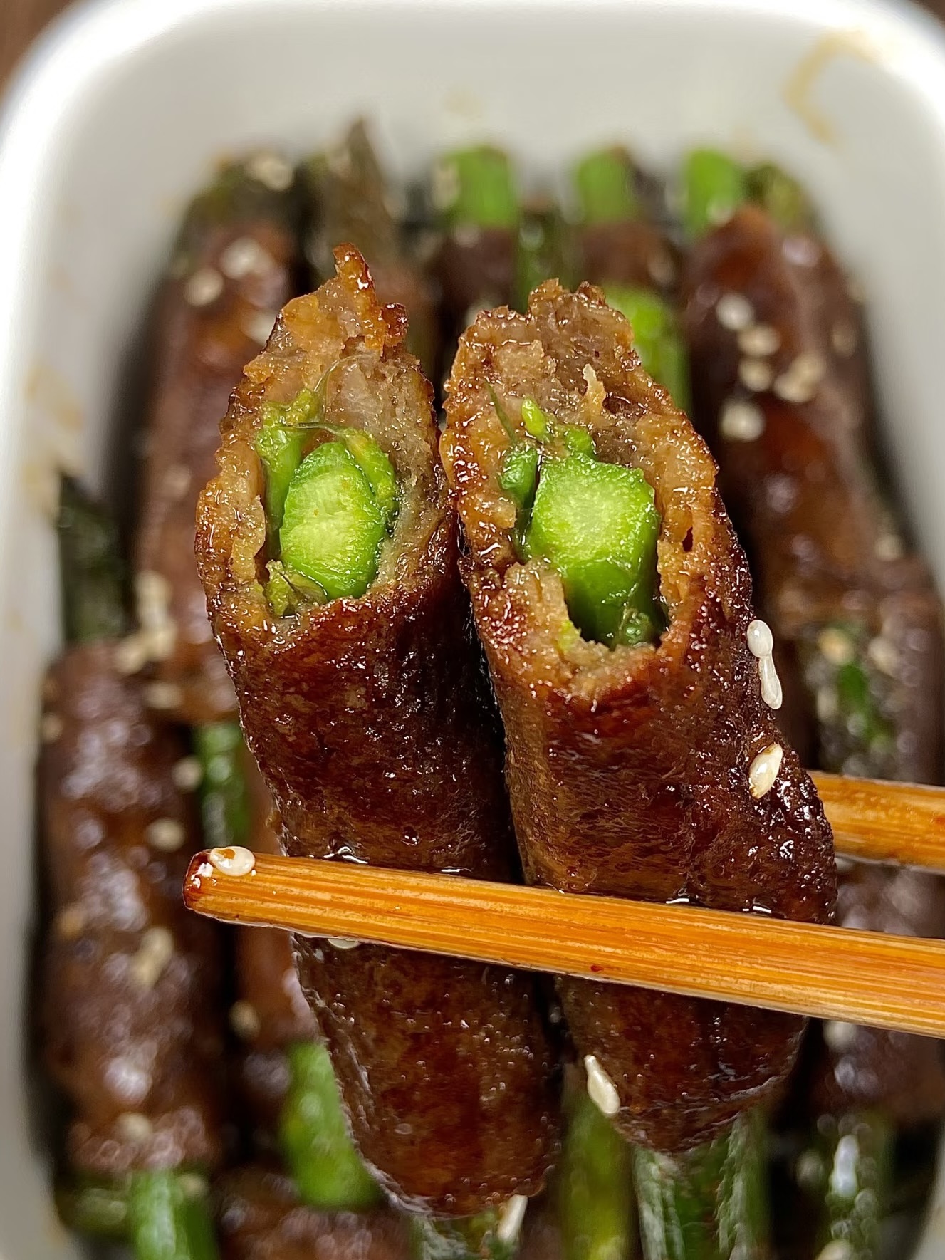 剩几根芦笋别浪费,切碎了和蛋液一起炒,第二天早餐就有了。肥牛卷最好现做现吃,放久了芦笋会“疲惫”。实在要打包,冷藏别超过24小时,吃前用平底锅无油回热1分钟,比微波更脆。带便当的话,把酱汁分开装,中午淋上去,办公室秒变日料店,同事闻着味就来蹭。