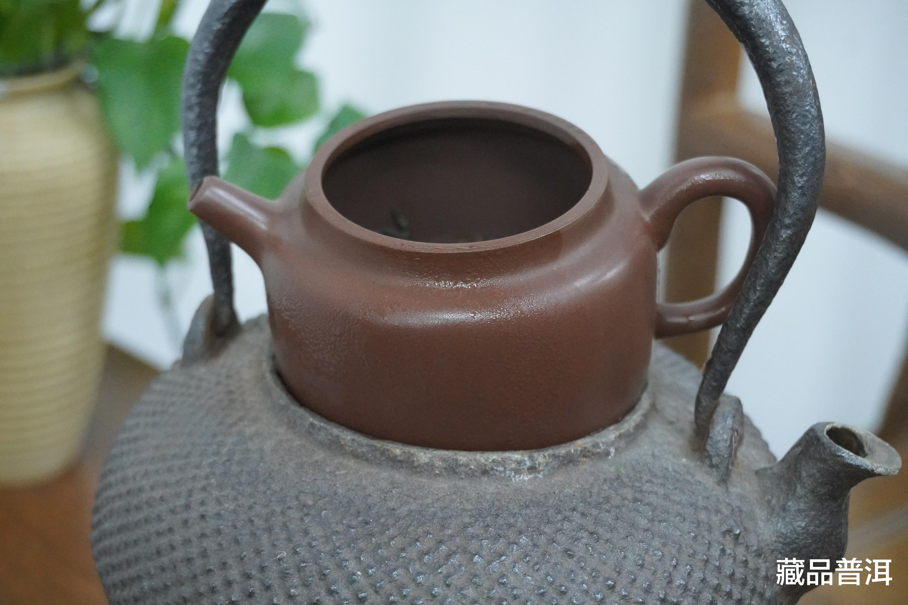 如果茶饼年份够老,还可以进一步醒茶。先用沸水把紫砂壶里外烫过一遍,再把茶叶投放到壶里,接着把紫砂壶放在铁壶口,借助老铁壶蒸腾出来的热气,给茶叶“热身”。
