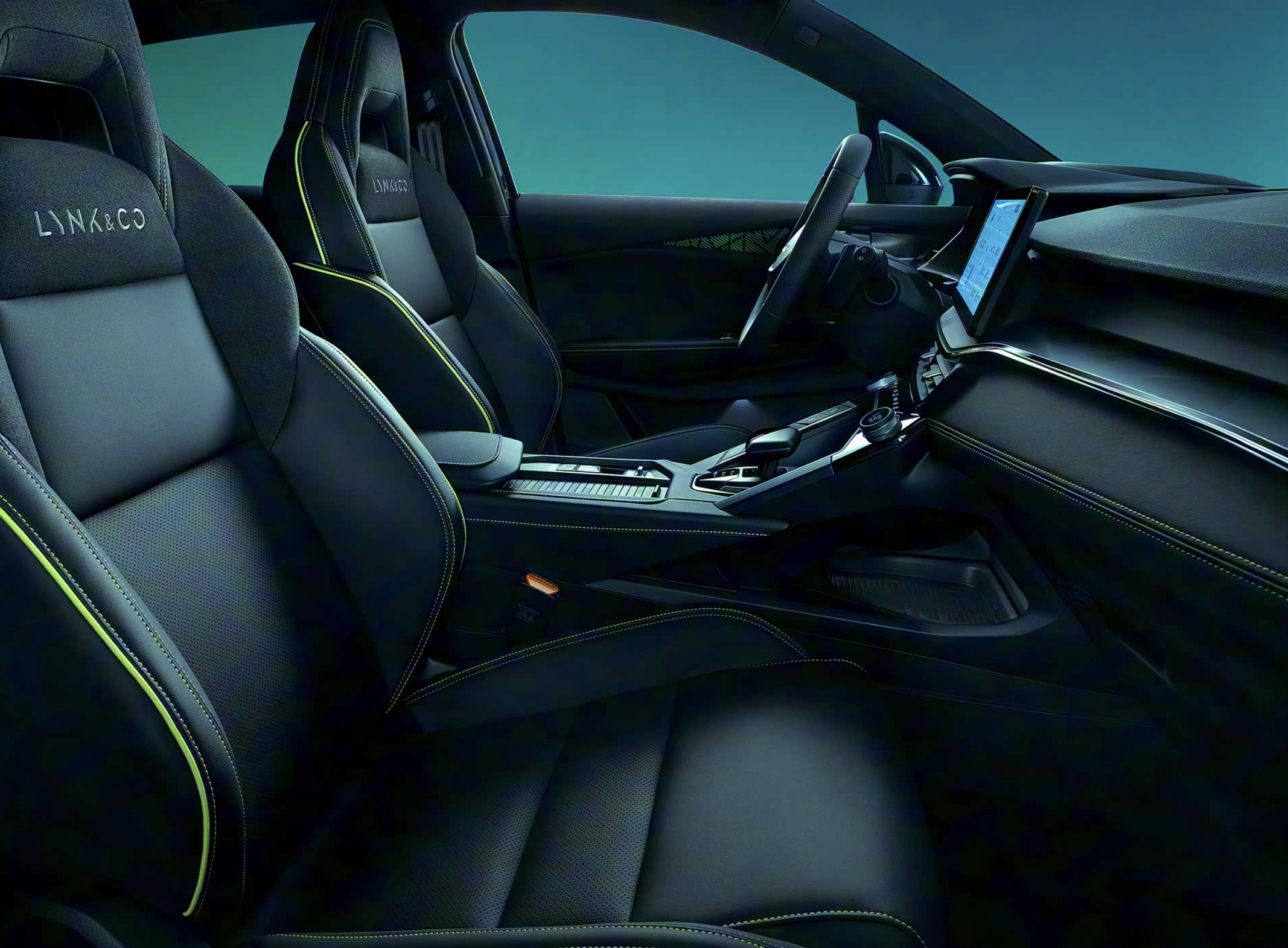 领克06采用了大面积黑灰色翻毛皮材质的铺陈、亮黑色装饰面板和碳纤维装饰面板的铺陈,再加上金色金属质感的扬声器装饰框以及银色的镀铬装饰条,凸显出了整车的高级质感。以“三零座舱”(0有害溶剂、0杂棉、0沥青)打造清洁空间,并搭载主动式座舱净化系统。N95滤芯与空调自干燥功能减少霉菌滋生,为乘客乘客提供了更加安全、舒适、健康的乘坐环境。中控台配备了10.2英寸的彩色全液晶仪表、15.4英寸的中控彩色液晶大屏,采用“龙鹰一号”芯片配LYNK Flyme Auto1.9.1车机系统,操作更加爱流畅、丝滑,还拥有更加出色的语音识别控制。还针对Lynk Sound音响系统进行升级,14扬声器与1000W功放构建7.1立体环绕声,频率覆盖35-20000Hz,带来了殿堂级的尊享感受。