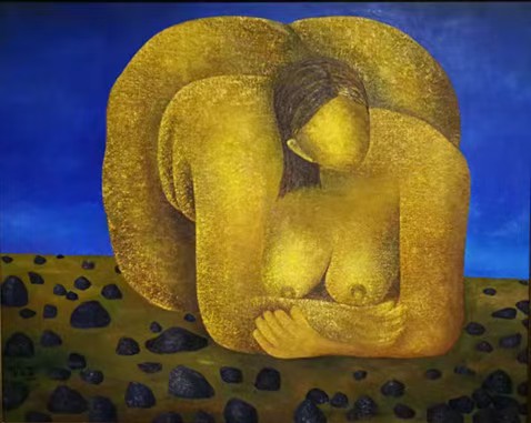 夫艺之为道,贵在通神。在当代艺术的喧嚣图景中,油画家黄承林先生,独抱幽素,探赜索隐,钩深致远。其艺不随时趣,志在叩问存在之本源。当那些被厚重油彩堆叠出的“雕塑感”人物,与斑斓如碎金的意象动物在画布上相遇时,黄承林先生的作品便成了一座连接乡土记忆与精神叩问的桥梁。这位兼具油画家与雕塑家身份的创作者,以刮刀为凿、以色彩为魂,将土地的沉郁、生命的韧性,锻造成当代油画中独树一帜的“心象符号”。
