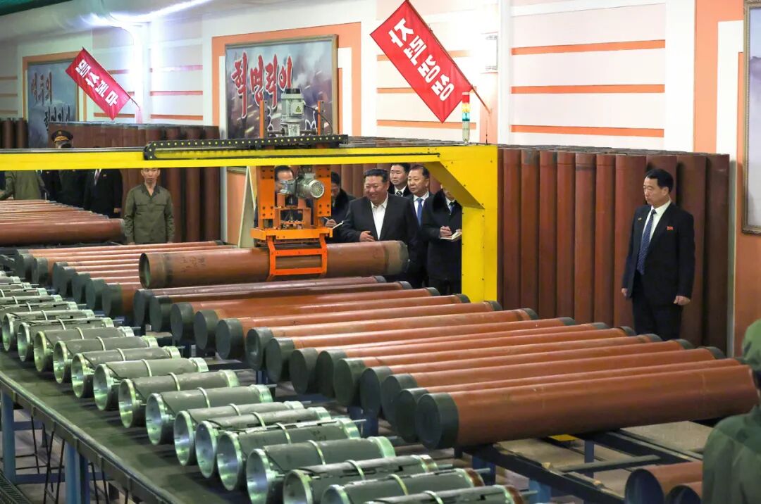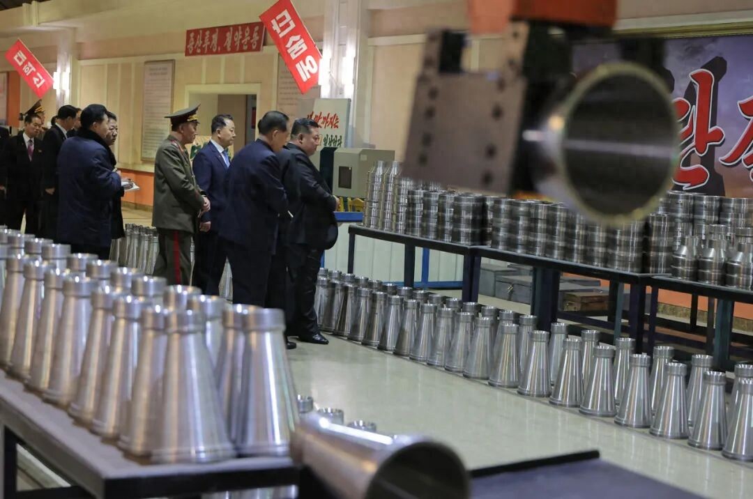 2025年12月26日朝鲜媒体报道了领导人视察军工厂的新闻,工厂车间里全是密密麻麻的导弹弹体和炮弹外壳零部件。