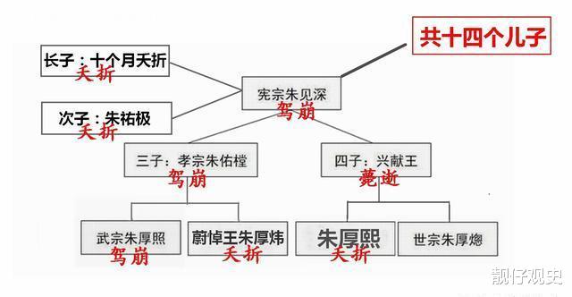 没办法喽,只能从他爷爷明宪宗朱见深的子孙里找啦。咱都知道,“天有不测风云,人有旦夕祸福”,宪宗头一个儿子,是跟那个有名的万贵妃生的,可才十个月左右就不幸夭折。二儿子朱祐极更可惜,还不到三岁也没了。老三是孝宗朱祐樘,可惜啊,这一支现在已经没后人了。老四朱祐杬呢,当时也去世了,他有俩儿子,大儿子朱厚熙出生才五天就夭折了,还好二儿子朱厚熜还在世,这朱厚熜那可是相当有名。