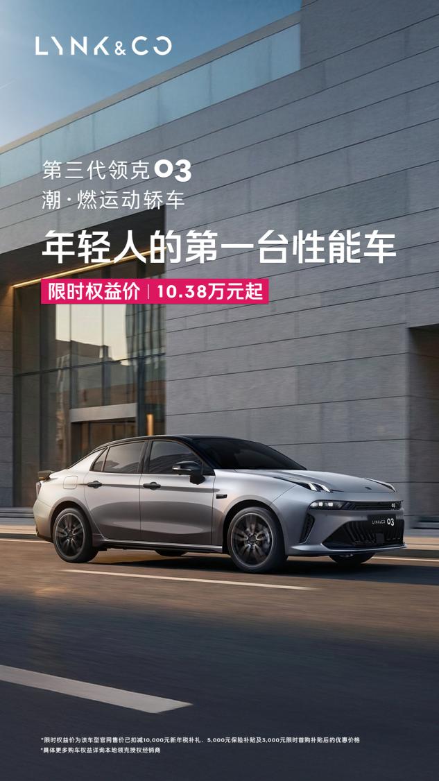 年关渐近,春运返乡的漫漫征途、走亲访友的频繁出行、新年焕新的生活追求,让一台兼具强劲性能、舒适体验与卓越品质的新车,成为年底消费市场的焦点。多数消费者选车时,既渴望座驾在动力、操控方面拥有可量化的硬核实力,又看重配置在实际用车场景中的实用价值,更希望以合理成本圆“春节开新车”的心愿。那么,领克03性能家族绝对不容错过,这款车实力全面均衡,不仅能满足返乡代步、旧车焕新、走亲访友等诸多需求,1月更推出限时购车权益,春节前即可顺利提车,让新年的仪式感直接拉满。