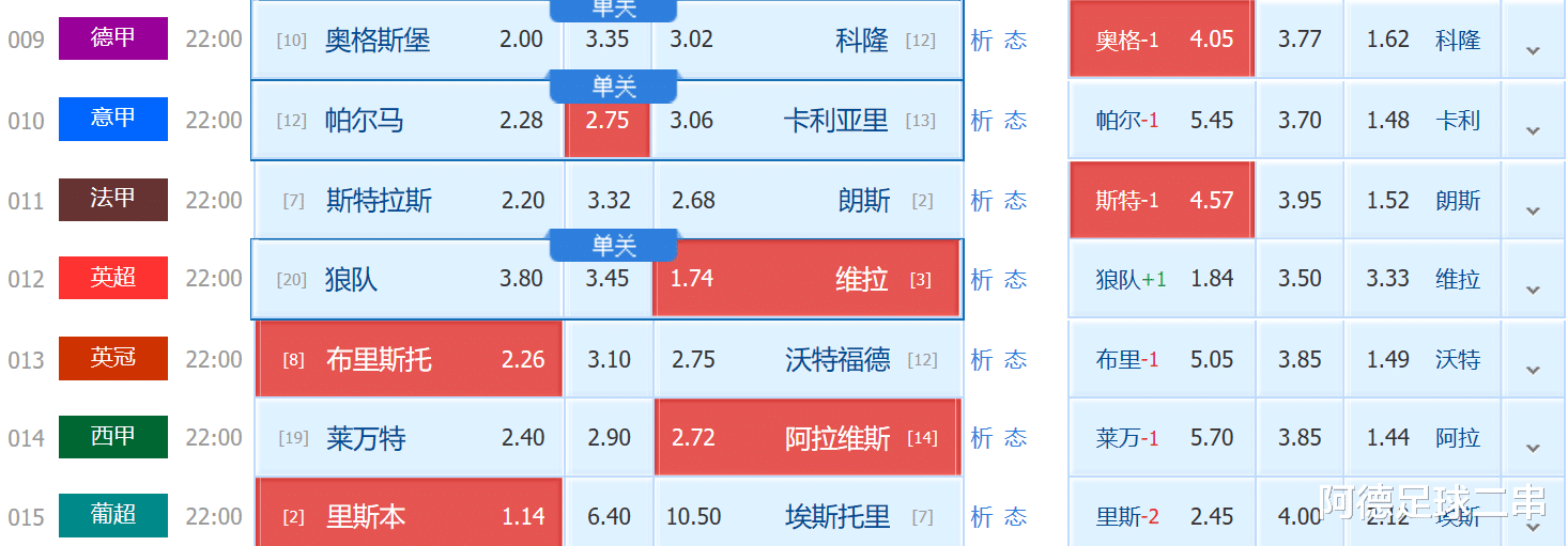 赛事推荐:平负