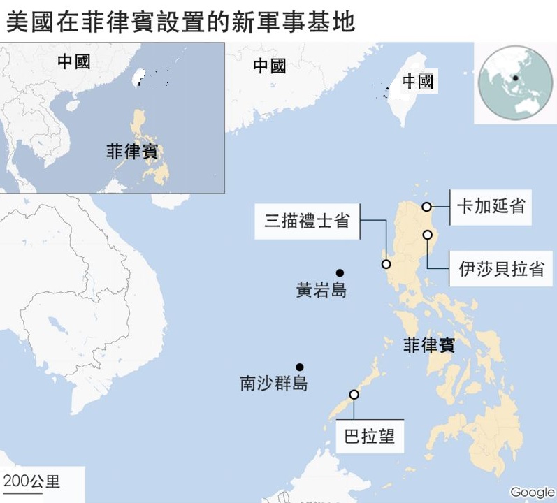 尽管美国在韩国、日本、菲律宾、关岛和夏威夷都驻有军队,但事实上,位于台岛南翼的菲律宾最为薄弱。美军在韩国驻扎约28500人,其中大部分是陆军;在日本驻扎约60000人,大部分是空军和海军;在关岛驻扎约9000名人,预计未来5年将增加至2万名,主要来自空军和海军。相较之下,美军在菲律宾名义上的长驻部队只有数百人,其中包括约60人的“菲律宾特遣队”、约15人的“仁爱礁特遣队”,以及美陆军第一多域战特遣队所属“中程能力连”(MRC Company)等。