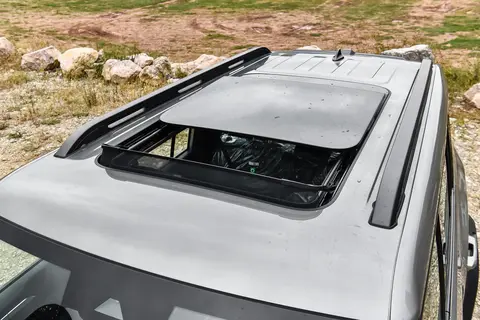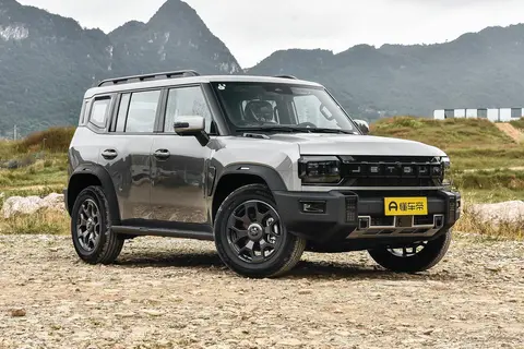 车身侧面的线条平直利落,外抛的轮拱与加宽至140mm的踏板(承重可达270公斤)不仅强化了力量感,还让上下车变得更方便。隐藏式门把手降低风阻的同时增添了科技感,车顶的行李架则为户外装备收纳预留了空间。车尾的侧开式尾门搭配外挂式备胎,是硬派SUV的标志性设计,新增的倒车雷达与亮黑色横向饰条,让实用性与美观度得到了双重提升。外观颜色方面,配备了冰川白,深海蓝,极夜黑和公路灰、雪山银5种车身颜色可供选择。