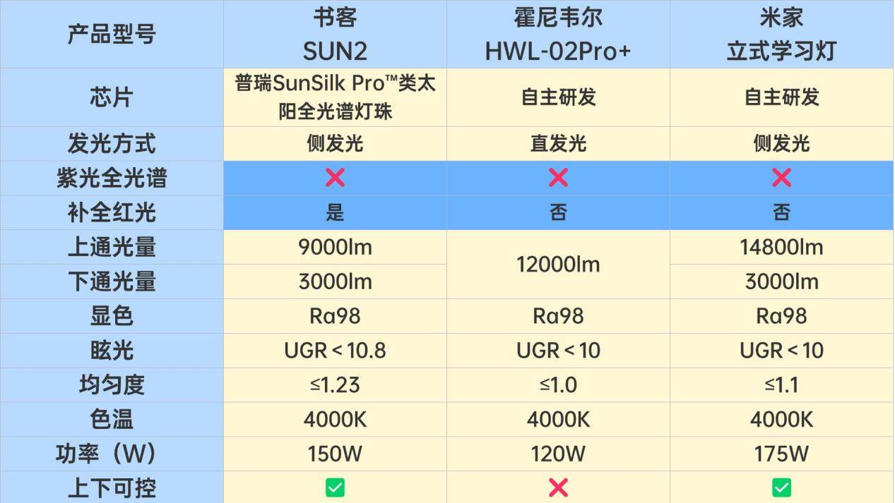 选错护眼大路灯可不是小事,不仅可能因光线刺眼、频闪让光线不佳,还可能因蓝光预制不到位,影响家人视力健康,而从实测表现来看,其中书客SUN2整体的表现让我出乎意料,光线舒适且性能配置远超同价位其他护眼灯机型,能够带来明亮且舒适护眼的光线,而米家Pro给我的感觉是比较倾向于智能化的,霍尼韦尔HWL-02Pro+的表现也可圈可点,但性价比不高,大家可以根据预算去选择。