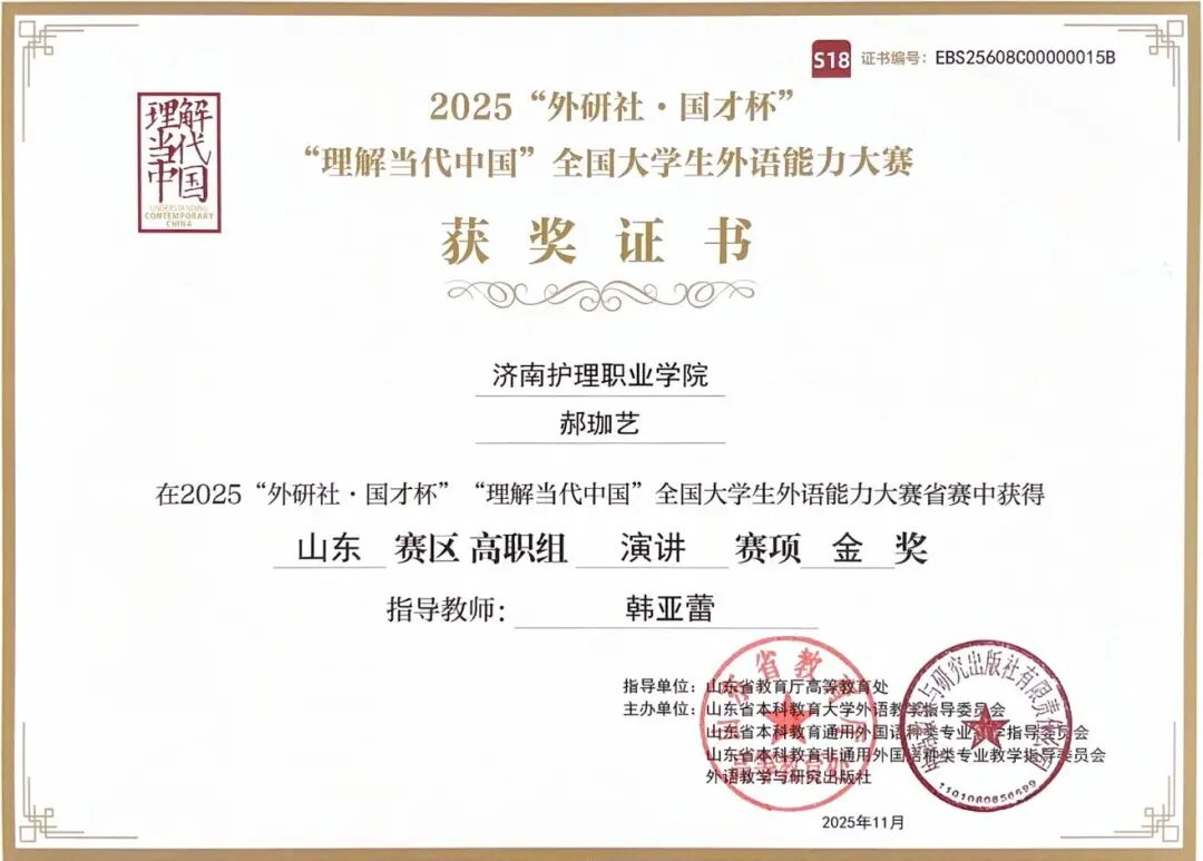 公共教学部深入践行“以赛促教、教研相长”理念,创新构建“价值引领+跨文化传播”双轮驱动教学模式,在持续提升教师专业素养的同时,取得一系列突破性成果。在外研社“教学之星”大赛全国职业院校外语课程思政案例专项赛中荣获全国特等奖,彰显了教学创新的扎实成效。