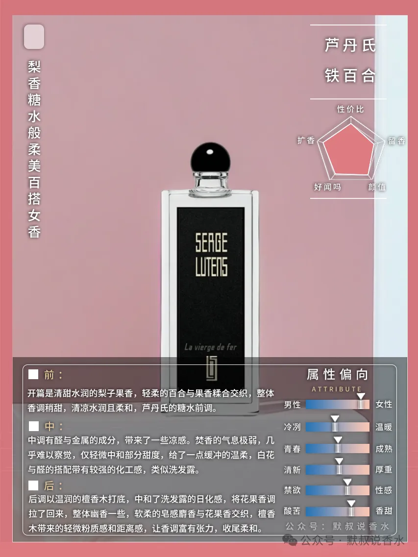 慎选:对醛香、金属感敏感者,讨厌洗发露般日化质感的人群;不推荐:追求无化工感纯粹香调的人,盛夏户外长时间使用者,偏爱浓郁厚重东方调的人群。