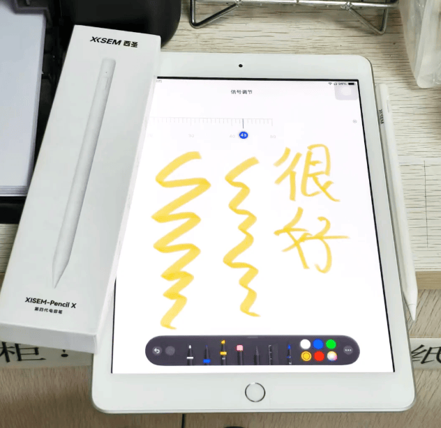 西圣电容笔的配置在同价位的电容笔算是非常顶级的了,还原Apple pencil书写体验度高达98%以上,具有高灵敏芯片,在国内电容笔中书写流畅度属于是第一梯队了。另外西圣Pencil有着与Apple Pencil几乎一样的绘画体验,电容笔划过屏幕质感和Apple Pencil的POM笔尖相同,随用笔力度的不同、顿笔等变化而变化,跟笔性非常好,没有任何延迟和断触等情况,手绘的体验感非常好。