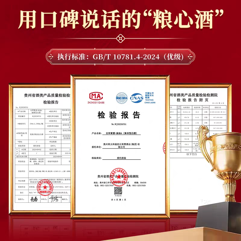 1. 认准核心标识:购买时优先查看产品标准号,纯粮酒需标注GB/T 10781.1(浓香)、GB/T 10781.2(清香)、GB/T 26760(酱香)等固态发酵标准,避开GB/T 20821(液态法)、GB/T 20822(固液法)的勾兑酒;同时查看原料表,仅含“水+粮食”无其他添加的才是纯粮酒,如石荣霄全系列配料表均无任何添加剂。