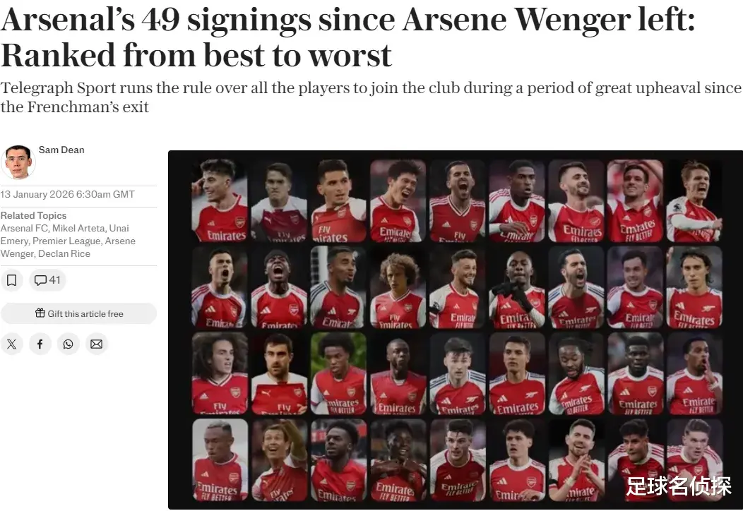 电讯报统计,自温格2018年夏天告别之后,阿森纳已经在转会市场上花费了10亿英镑以上,总共签下了49名球员。