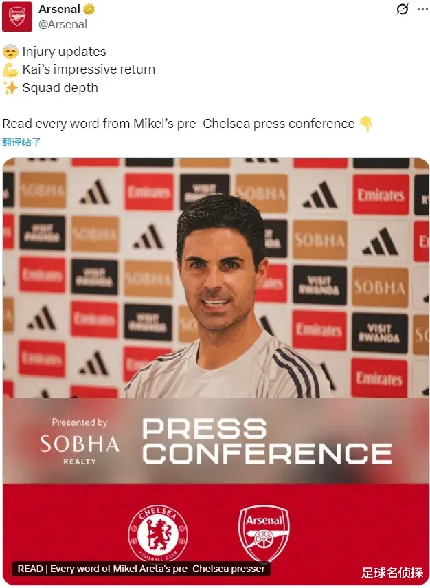 阿尔特塔出席了赛前新闻发布会,我们来看看阿森纳主帅提到了哪些重点内容。