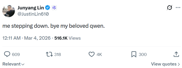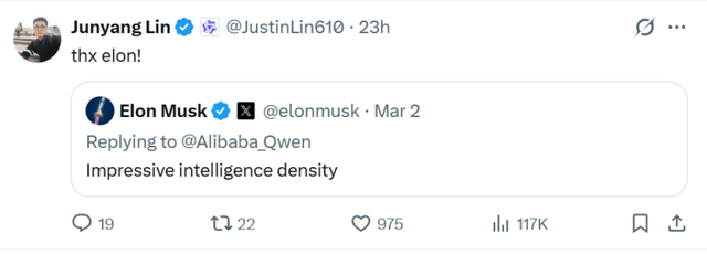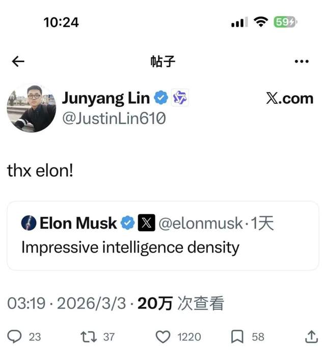 林俊旸深夜宣布离开千问,上一条还是感谢马斯克表扬