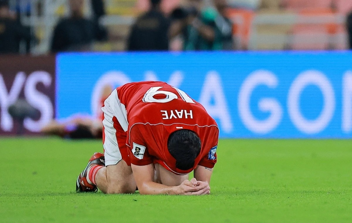 比赛结束的那一刻,印尼球员们纷纷跪倒在地,难掩失望。中场大将汤姆·海耶更是当场失声痛哭,瘫坐在地,泪水止不住地滑落脸颊。电视镜头捕捉到这一幕:他双手抱头,无法抑制内心的悲痛。