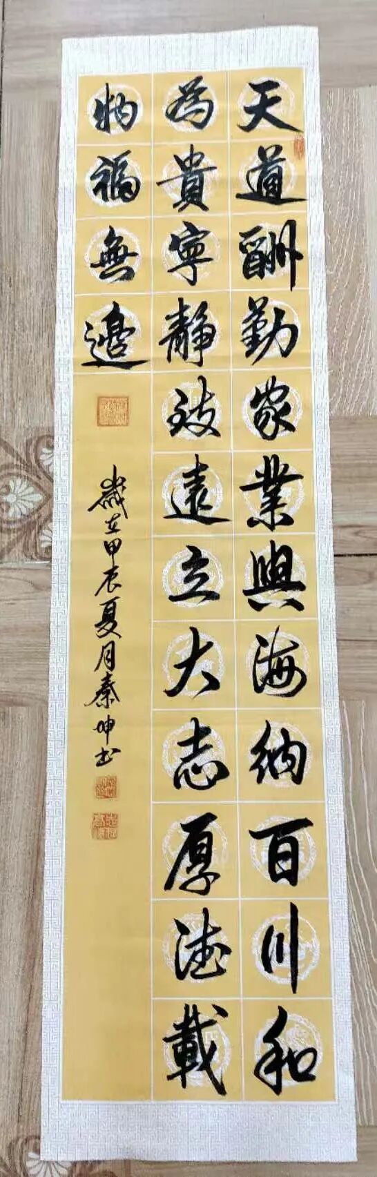 秦桥国(秦坤)广西桂林八里街人,国家高级书法师、国礼形象大使、时代标杆、中国书画家研究会及当地书画创作基地成员。2022年9月曾获得中国当代正能量文艺工作者“时代标杆”称号,2022年10月,在参加盛唐系列“华夏杯”全国书画大赛中荣获“二等奖”,同年12月被国礼文化网特邀为顾问。并授予“国礼形象大使”称号。2023年4月又在盛唐系列“华夏杯”全国书画大赛中荣获“一等奖”,2023年8月,在参加《唐诗三百首.百家传世馆》文脉传承活动中,荣获“千年文脉传承艺术家”称号,2024年3月在“润墨斋”2022一2023年度作品评选中,荣获“优秀作品奖”,同年5月在年度作品评选中,获得“秦韵杯”全国书画大赛“最具潜力奖”。2024年11月,在参加“墨缘堂”全国书画艺术大赛中荣获“特等奖”。同年12月又参加了“兰亭杯”全国书画大赛中获得“最佳作品金奖”。作品还被收录在《中国书法传世经典》、巜当代名家大典》、巜中国书画家功勋人物》、巜世界书画名家收藏档案》、巜中华书画传承大师》、巜艺海辞源.盛世名家》、2025入编全国两会重点推荐艺术名家巜共筑中国梦.翰墨华夏情》、《全球美育教科书》等权威著作中,作品还参加了“中国酒文化”和“中国集邮”大型活动的制作。