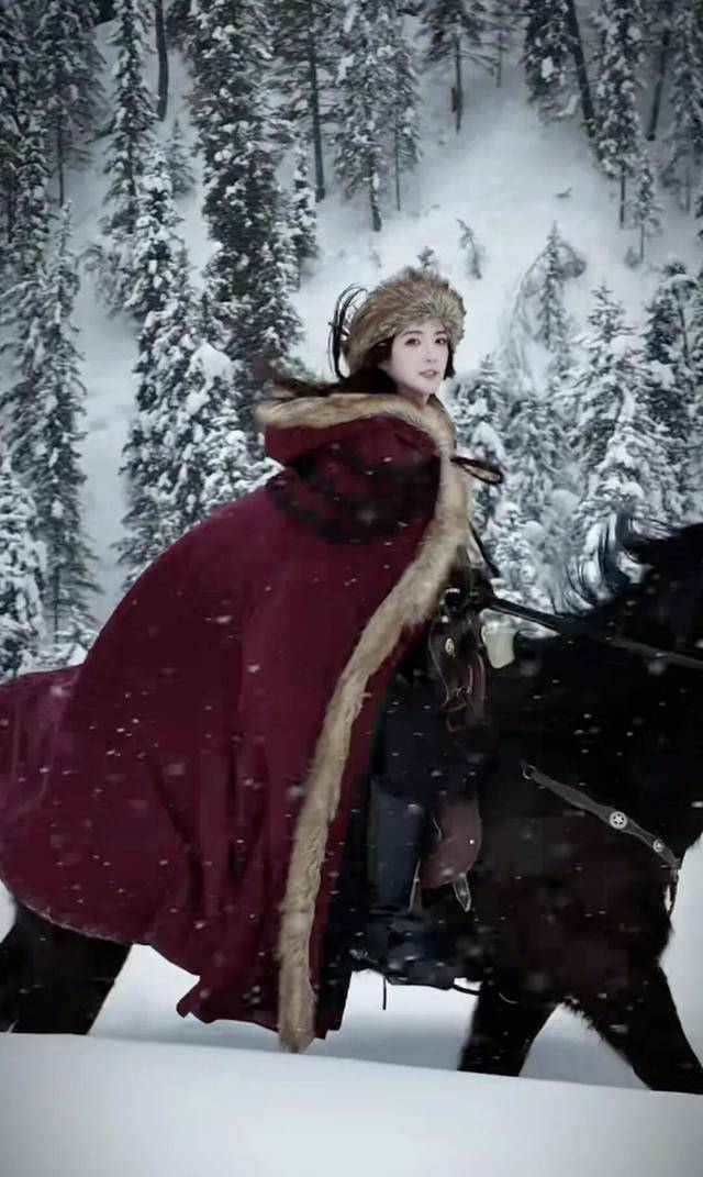 视频中,苟芸慧身穿厚实的冬装,虽然包裹得严严实实,但依然难掩她那张精致绝伦的脸庞。她骑着一匹骏马,在大雪纷飞的野外森林中策马奔腾。