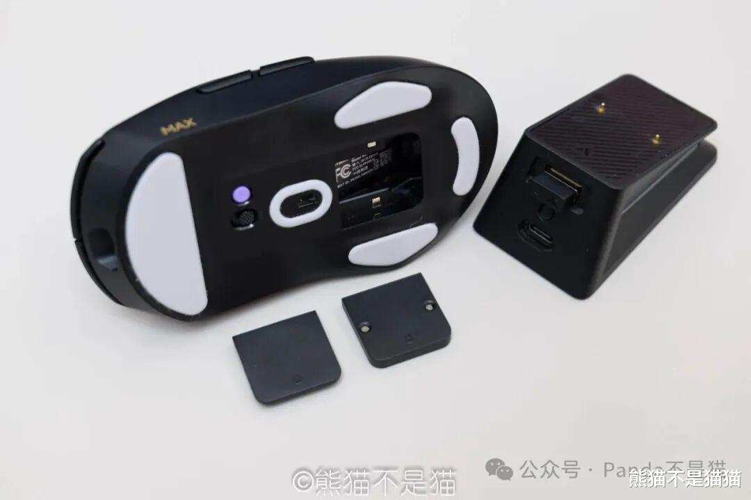 底部延续了VT系列的设计,采用了磁吸的无线接收器槽板,同时如果你手里有雷柏的磁吸充电底座P5,也可以替换,不会存在升级之后老配件无法使用的尴尬情况。除此之外则是常规的电源键与DIY按键。