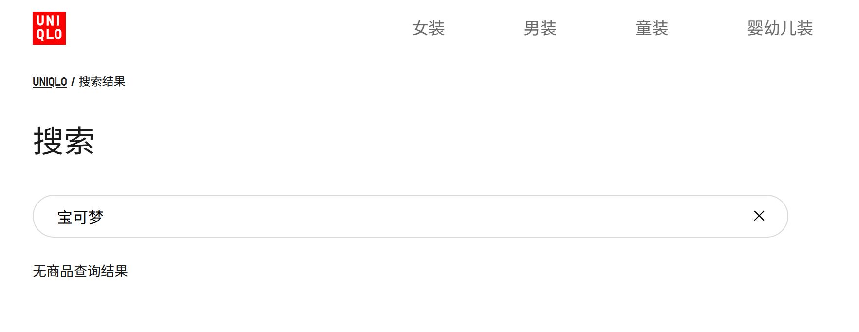 优衣库官网已搜寻不到宝可梦联名服饰。 企业官网截图