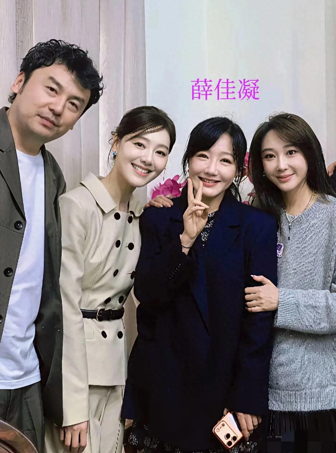 薛佳凝与杜若溪关系不错,一直形影不离,在合影中,雷佳音的发型比较雷人。