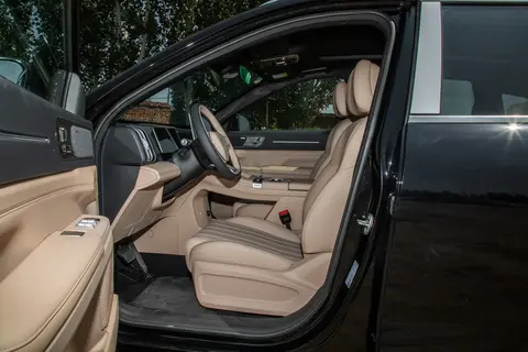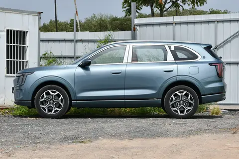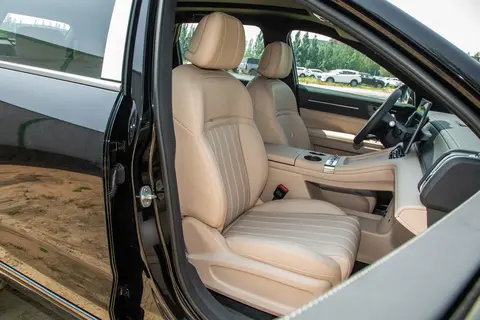 车窗周围的镀铬饰条很有质感,阳光照上去不会显得廉价;半隐藏式门把手是个贴心设计,走近车子会自动弹出来,不用弯腰去拉,而且关上后和车身齐平,能减少风阻。19英寸的轮辋大小刚好,搭配的轮胎胎面比较宽,销售说这种轮胎抓地力好,雨天开着更安全,我想着以后带家人跑高速,心里也踏实了不少。