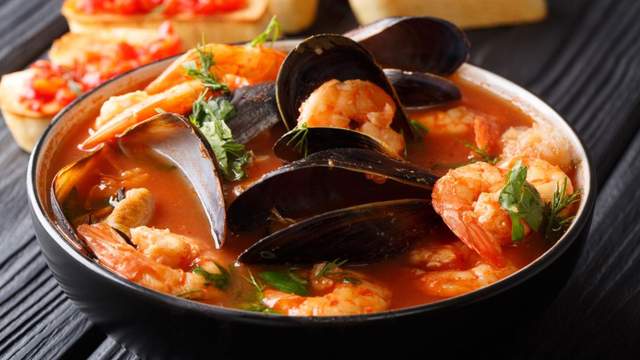 法国马赛流行的布埃拉比斯汤含有多种海鲜。