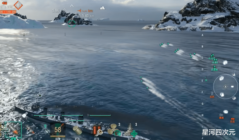 猎兵这艘船,完美继承了历史鱼雷艇特性,它搭载了4组三联装鱼雷发射管,尽管单枚鱼雷7533标伤偏低,但12KM射程、85节航速配合85秒快速装填,能够形成连绵不绝的鱼雷攻势。在指挥官技能和升级品加持下,鱼雷航速可提升至95节,雷战列舰基本必中,而且这雷主打进水,分开两波扔出去,很容易耗死对面。