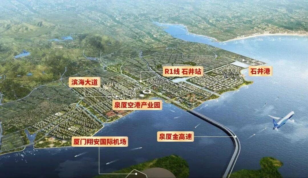 南翼新区地处泉厦金湾区、厦漳泉都市圈的核心地带,是泉州“一湾两翼三带”城市总体空间布局的重要组成部分。其中,作为南翼新区的核心区重镇,石井拥有石井港的海港资源,坐拥厦门翔安国际机场的临空优势,以及厦漳泉城际轨道R1线石井站等综合枢纽,区位优势明显。