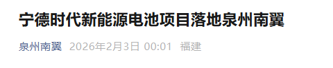 根据泉州南翼国家新区建设指挥部官方账号发布的信息显示,宁德时代项目将落地南翼新区。