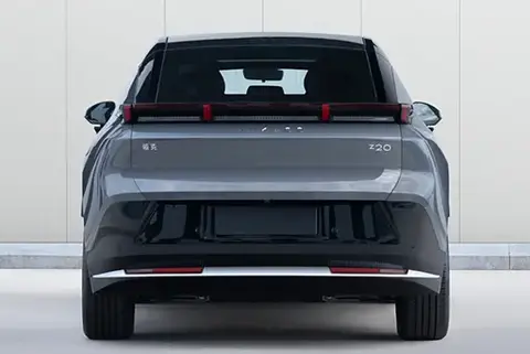 车身侧面的设计可以说是 Z20 的精髓,一条被称为 “星际穿梭” 的腰线从车头一直流畅地延伸到车尾,线条感十足。后轮拱上方还特意勾勒出了肌肉感满满的线条,让车身看起来更有力量感。隐藏式的门把手和无框车门,让整个侧面显得特别干净利落,没有多余的繁琐设计。从 B 柱之后快速下滑的溜背造型,再加上微微上翘的流光尾翼,不仅让外观更时尚,还能在高速行驶时增加下压力,提升行驶稳定性。