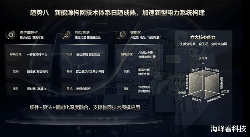 趋势八:构网技术体系成熟,新能源从跟随者变为构建者。构网技术融合了黑启动、惯量支撑、宽频振荡抑制等关键技术,使储能与逆变器具备全工况的稳定支撑能力。高性能硬件平台与智能构网算法结合,正推动系统走向全场景自适应、可观测、可验证的新阶段。