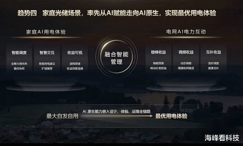 趋势四:家庭光储场景,从AI赋能走向AI原生。家庭能源管理将超越最大自发自用的基础需求,通过AI实现智能调度、智慧交互与收益优化。AI能预测电价波动,自动实现低买高卖,并参与电网调频,让家庭从能源消费者变为产销一体的产消者。